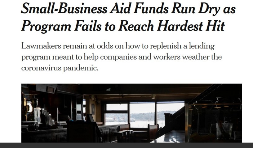 The current system is not working for small and micro businesses – as documented in the New York Times and other media. Yet recent studies show that many small businesses will be wiped out in a few months if current conditions continue.