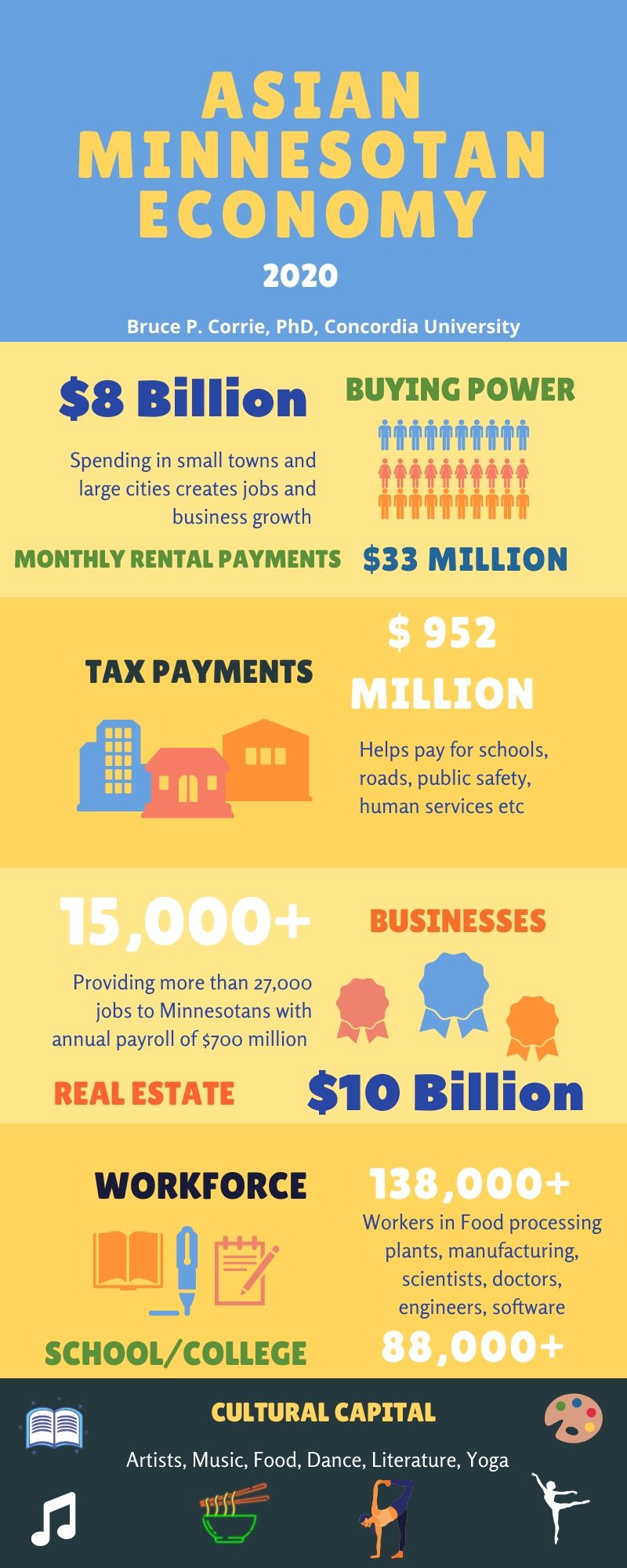 Download a fact sheet on the Asian Economy of Minnesota- $8 billion buying power, $952 million tax payments, 15000 businesses, $10 billion real estate, 138,000 workers, 88,000 youth in schools and colleges, $33 million monthly rental payments. Time to invest now.