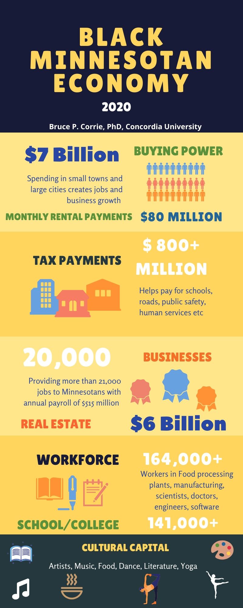 Download a fact sheet on the Black Economy of Minnesota- $7 billion buying power, $800 million tax payments, 20,000 businesses, $6 billion real estate, 164,000 workers, 147,000 youth in schools and colleges, $80 million monthly rental payments. Time to invest now.